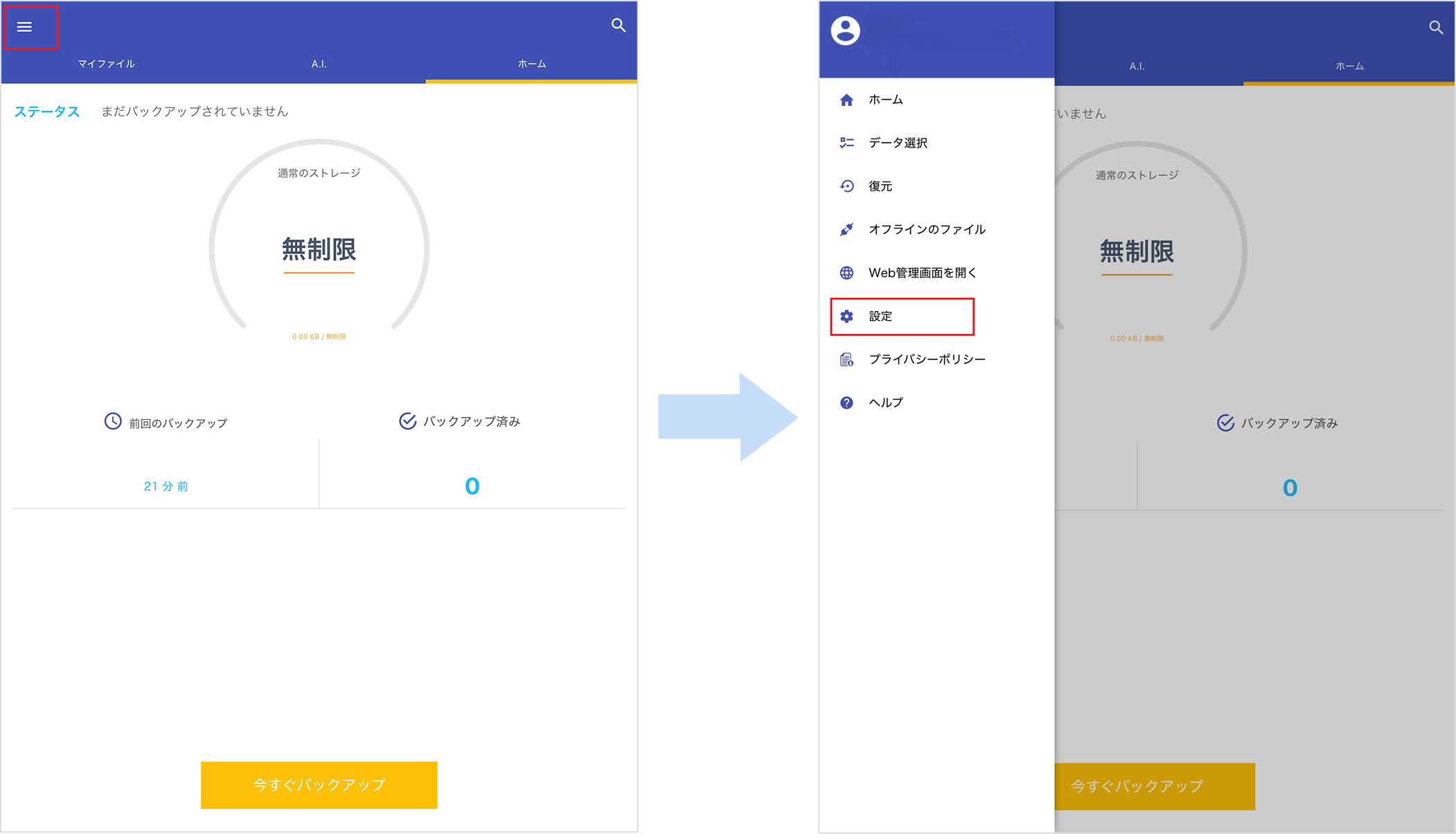 | AOSBOX HOME | Android | 「バックアップの設定」 |